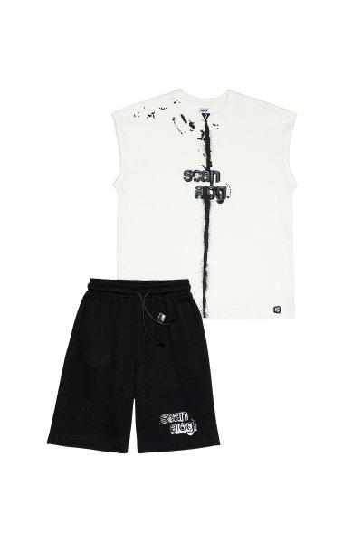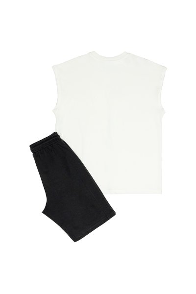Παιδικό σετ βερμούδα Sprint για αγόρι από 7 έως 16 ετών. Μπλούζα σε λευκό χρώμα με τύπωμα και μαύρη βερμούδα.