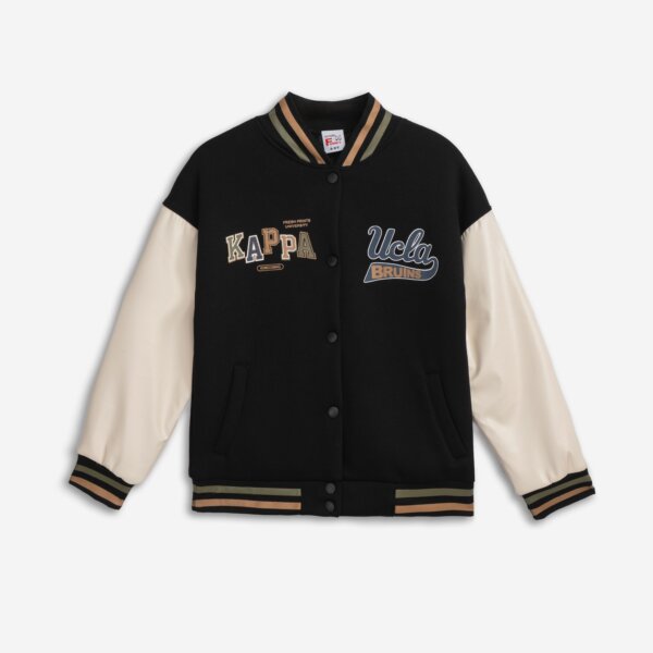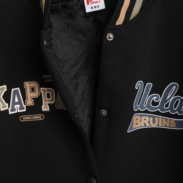 Παιδική ζακέτα φούτερ με δερμάτινα μανίκια και τύπωμα for Funky kids για αγόρι από 6 έως 16 ετών σε μαύρο-εκρού χρώμα.