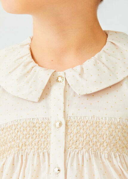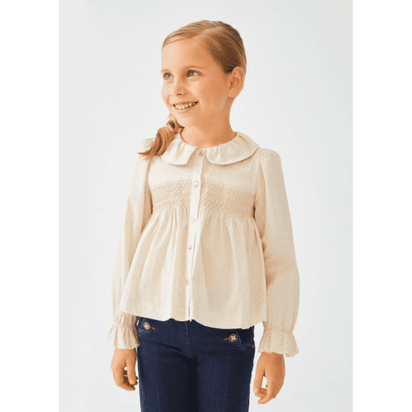 Παιδική Μπλούζα βαμβακερή Abel & Lula για κορίτσι από 6 έως 16 ετών με κουμπιά, στρογγυλεμένο γιακά και λάστιχο στα μανίκια σε χρυσαφί χρώμα.