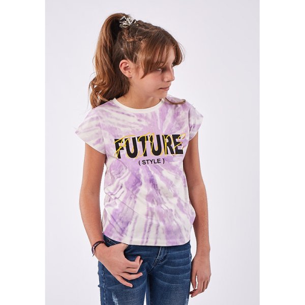 Μπλούζα Tie Dye κοντομάνικη σε μωβ χρώμα με τύπωμα.