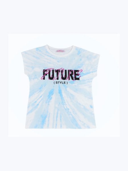Μπλούζα Tie Dye κοντομάνικη σε γαλάζιο χρώμα με τύπωμα.