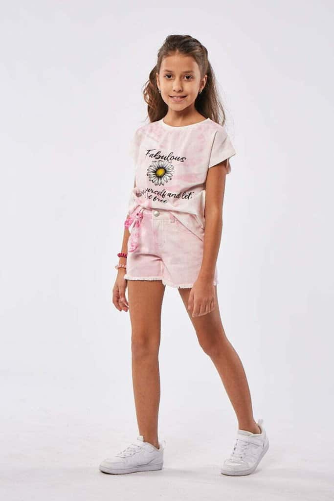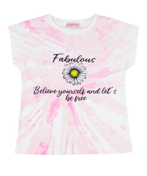Μπλούζα Tie Dye κοντομάνικη σε ροζ χρώμα με τύπωμα .