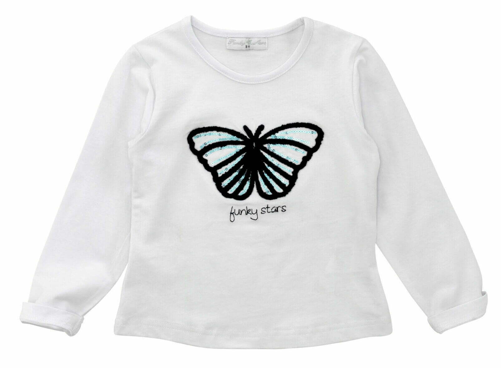 Παιδική μπλούζα μακρυμάνικη for Funky kids για κορίτσι από 1 έως 6 ετών σε λευκό χρώμα με πεταλούδα και πούλιες.