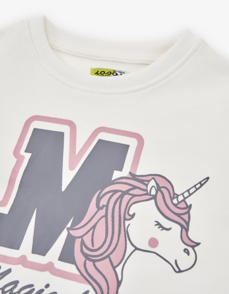 Παιδική μπλούζα φούτερ LOSAN για κορίτσι από 3 έως 12 ετών σε εκρού χρώμα με τύπωμα unicorn.
