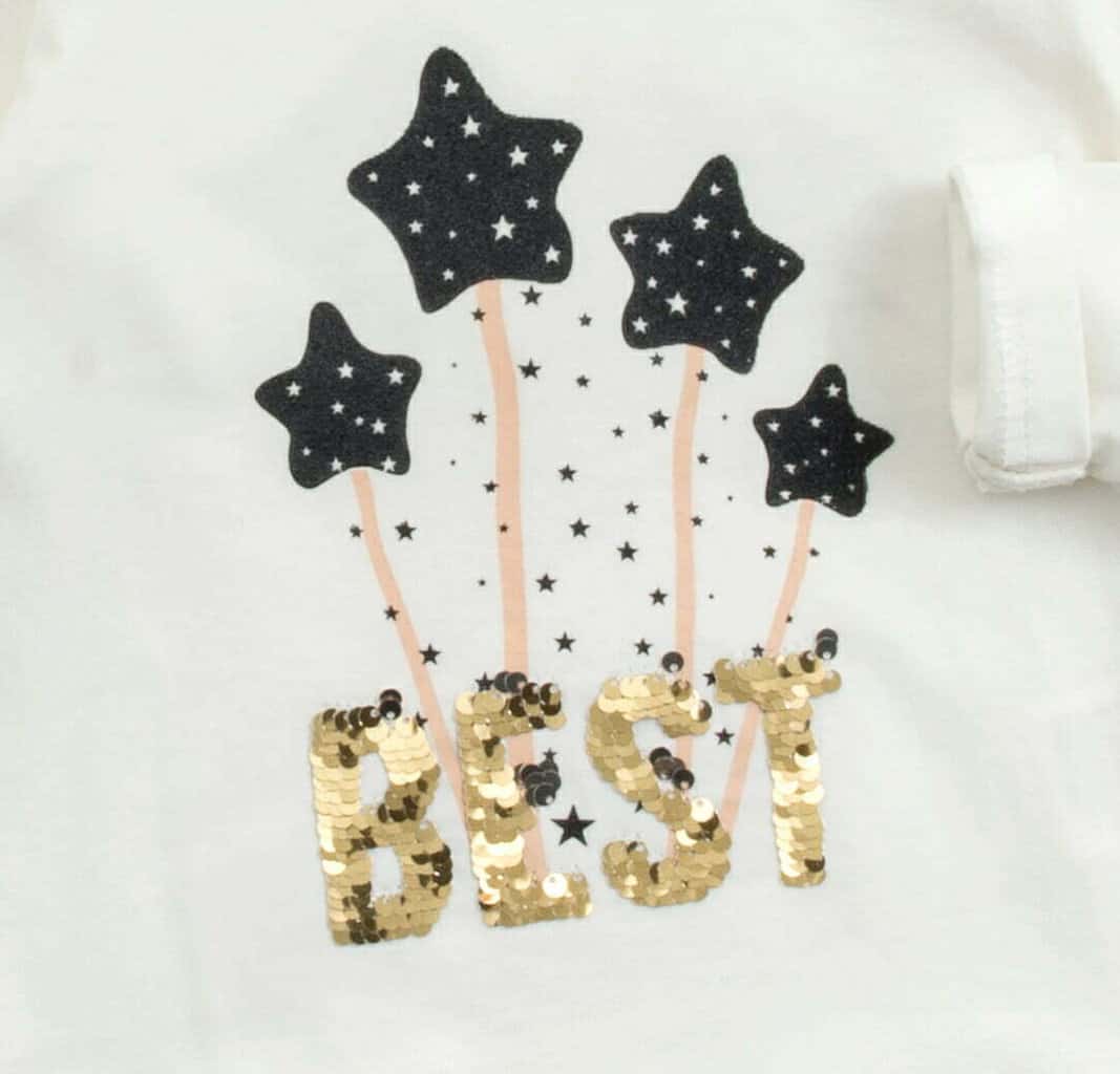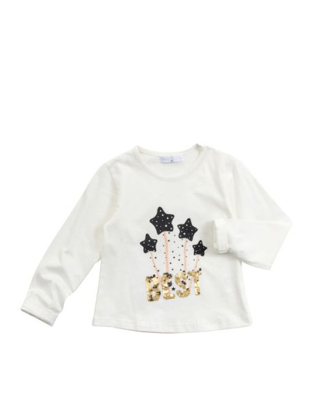 Παιδική μπλούζα μακρυμάνικη for Funky kids για κορίτσι από 1 έως 6 ετών σε χρώμα εκρού με τύπωμα BEST με παγιέτες.