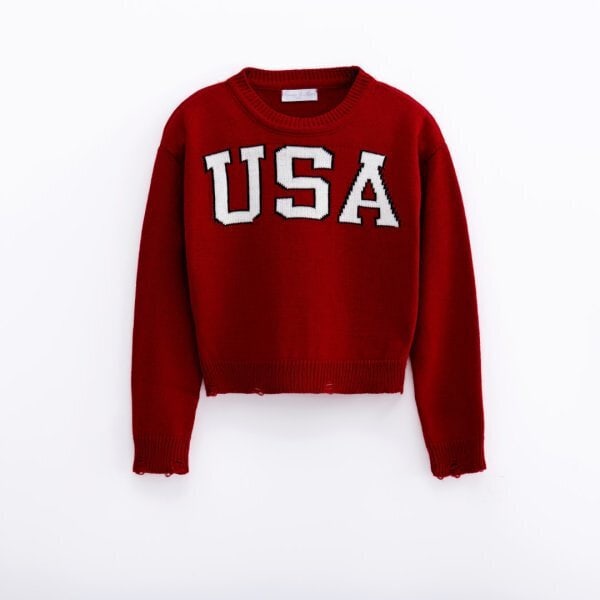 Παιδική μπλούζα πλεκτή for Funky Kids για κορίτσι από 6 έως 16 ετών σε κόκκινο χρώμα με τύπωμα.