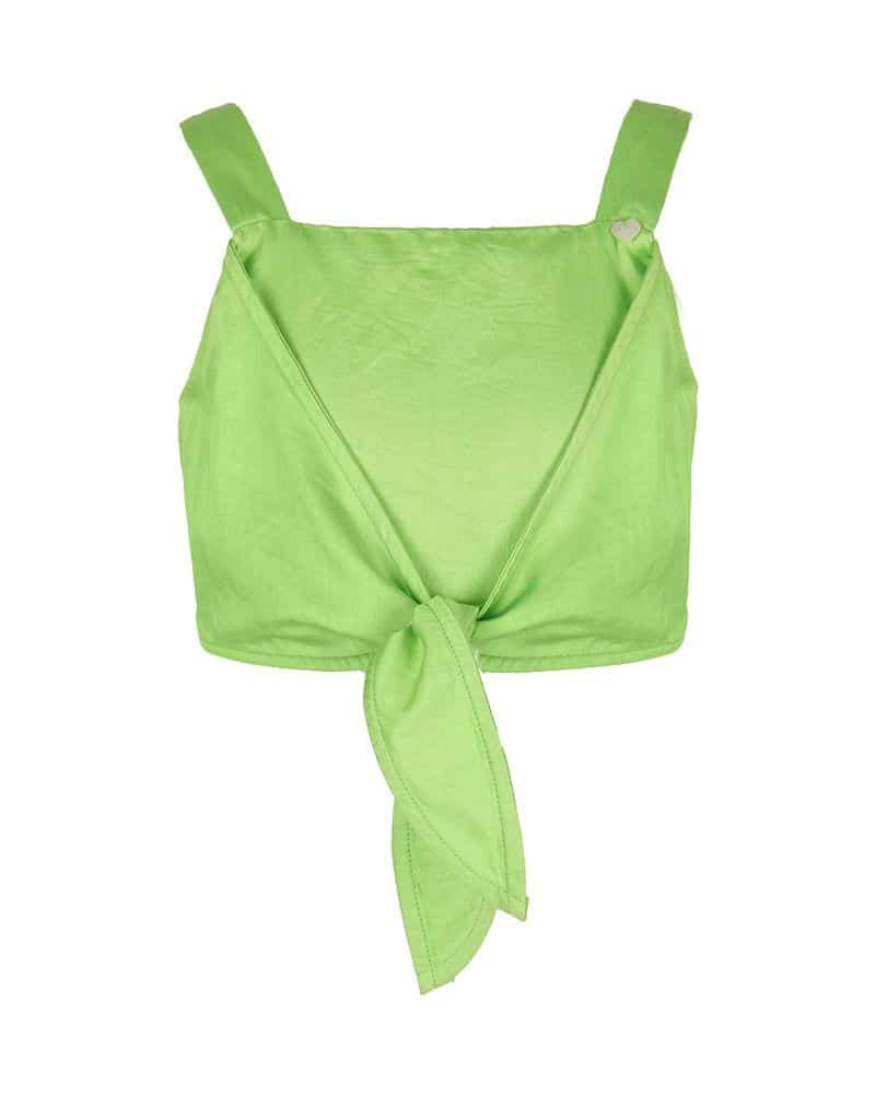 Κι όμως, μπορείτε να δημιουργήστε μια ιδιαίτερη στυλιστικά εμφάνιση, με ένα μονόχρωμο crop-top. Δροσερή ποιότητα, με θηλυκό shirt effect δέσιμο, που αποκαλύπτει την κοιλιά με στυλ. Συνδυάζεται ιδανικά με το αγαπημένο σας pin-up σορτς.