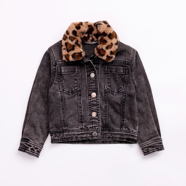 Παιδικό μπουφάν τζιν for Funky Kids για κορίτσι από 1 έως 6 ετών σε μαύρο χρώμα με τύπωμα.
