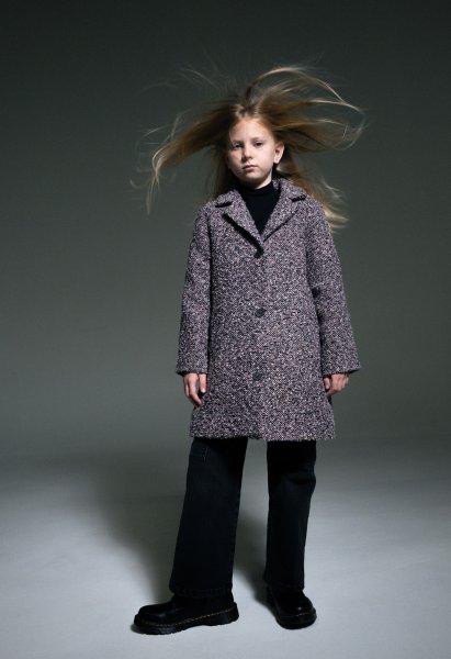 Παιδικό παλτό Εβίτα για κορίτσι από 6 έως 16 ετών σε χρώμα γκρι-ροζ.