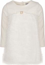 Φόρεμα εκρού λύκρα με πλεκτό μοχέρ jersey.