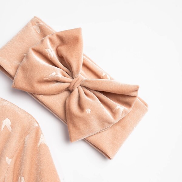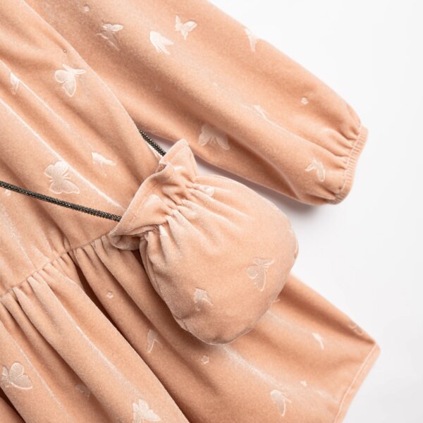 Παιδικό φόρεμα βελούδινο for Funky kids για κορίτσι από 2 έως 6 ετών σε ροζ χρώμα με ασορτί κορδέλα για τα μαλλιά και τσαντάκι.