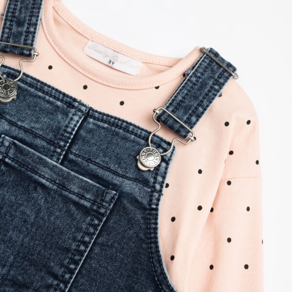 Παιδικό σετ σαλοπέτα με μπλούζα for Funky kids για κορίτσι από 2 έως 6 ετών. Σαλοπέτα τζιν και ροζ μπλούζα.