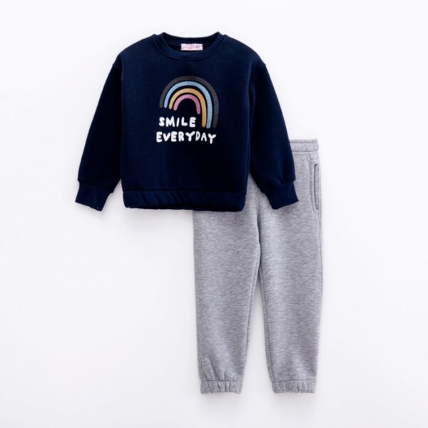 Παιδικό σετ φόρμα φούτερ for Funky Kids για κορίτσι από 1 έως 6 ετών σε μπλε χρώμα με τύπωμα και γκρι παντελόνι.