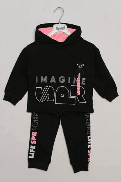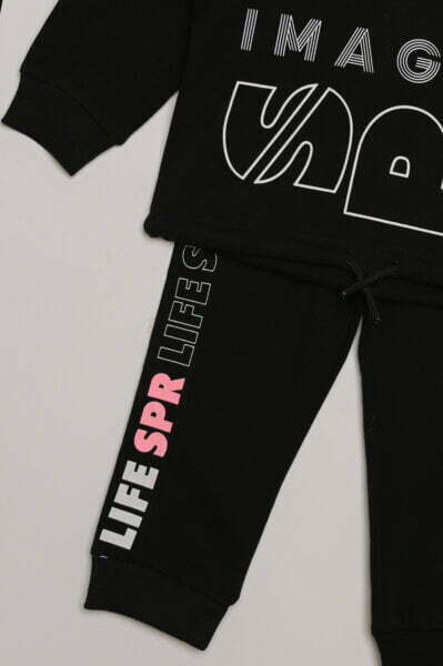 Παιδικό σετ φόρμας Sprint για κορίτσι από 12 μηνών έως 5 ετών σε μαύρο χρώμα.