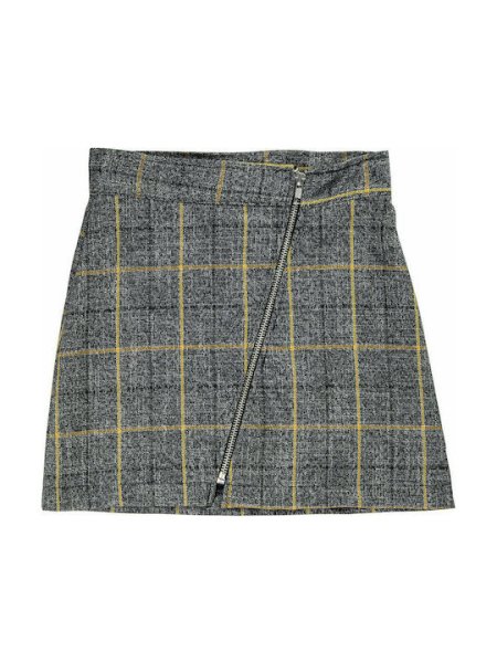 Παιδική φούστα for Funky kids σε γκρι καρό με κίτρινες λεπτομέρειές και πλάγιο φερμουάρ.