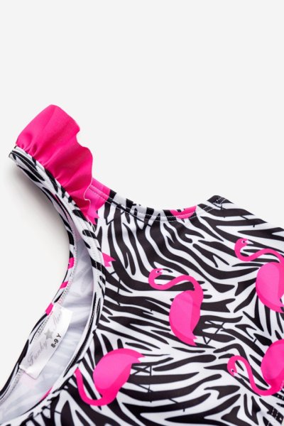 Παιδικό μαγιό μπικίνι for Funky Kids για κορίτσι από 6 έως 16 ετών σε χρώμα φωσφορούχο ροζ με ολόσωμο τύπωμα λευκό ζεβρέ και φλαμίνγκο.