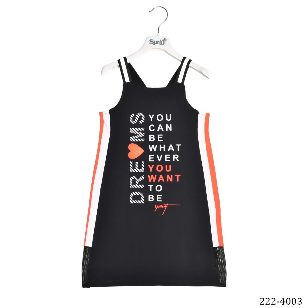 Παιδικό αμάνικο φόρεμα Sprint για κορίτσι από 6 έως 16 ετών σε μαύρο χρώμα με τύπωμα.