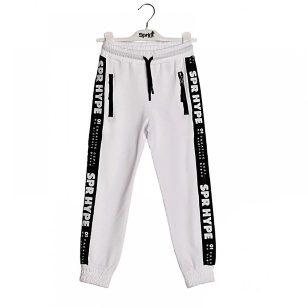 Παιδικό παντελόνι φόρμας Sprint για κορίτσι από 6 έως 16 ετών σε λευκό χρώμα με τύπωμα.