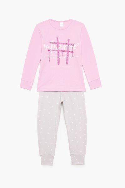 Παιδικό σετ πιτζάμες Pretty Baby για κορίτσι από 2 έως 6 ετών. Μπλούζα σε λιλά χρώμα και γκρι παντελόνι.