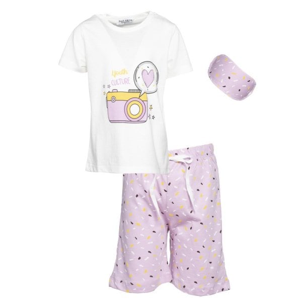 Μπλουζάκι κοντομάνικο σε λευκό χρώμα με τύπωμα και μάσκα ύπνου.