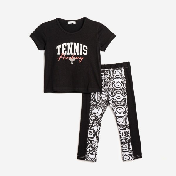 Παιδικό σετ μπλούζα & κολάν for Funky Kids για κορίτσι από 6 έως 16 ετών. Μπλούζα με τύπωμα σε μαύρο χρώμα, κολάν κάπρι σε λευκό και μαύρο χρώμα με ολόσωμο τύπωμα.