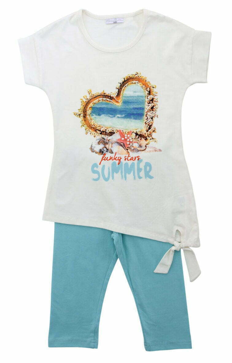 Παιδικό Σετ Μπλουζοφόρεμα for Funky kids για κορίτσι από 6 έως 16 ετών σε λευκό χρώμα με τύπωμα και κολάν σε τυρκουάζ χρώμα.