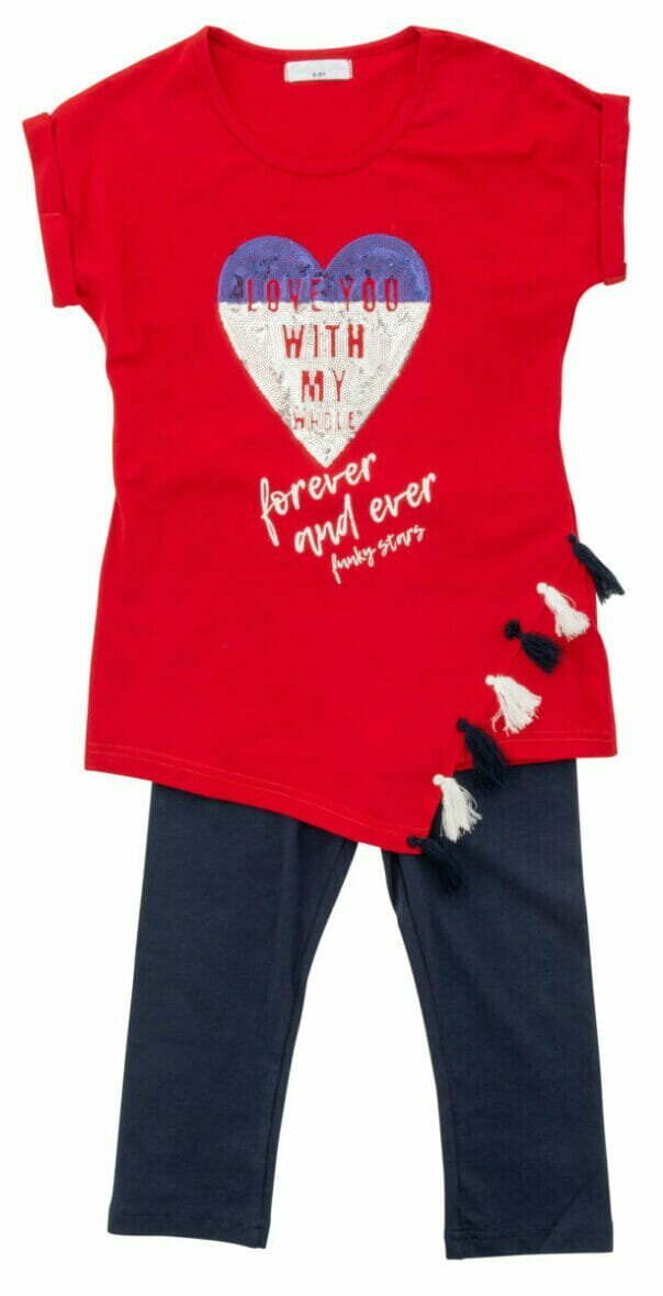 Παιδικό Σετ Μπλουζοφόρεμα for Funky kids για κορίτσι από 6 έως 16 ετών σε κόκκινο χρώμα με τύπωμα και κολάν σε μπλε χρώμα.