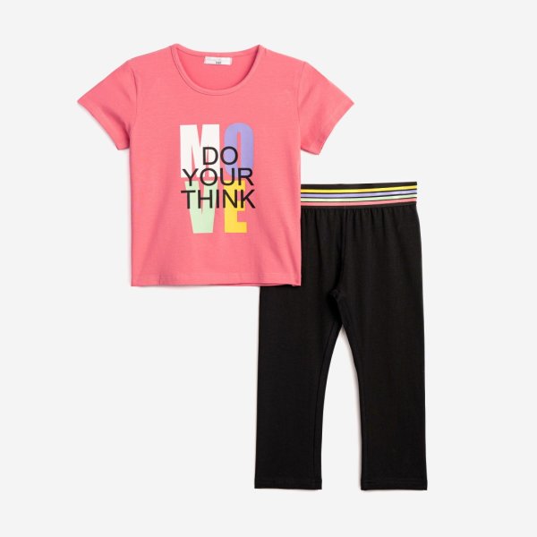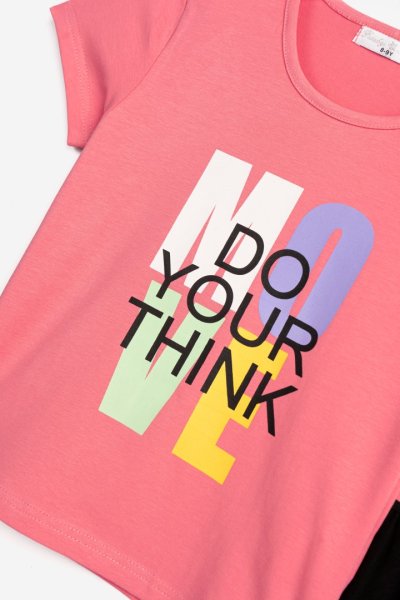 Παιδικό σετ μπλούζα & κολάν for Funky Kids για κορίτσι από 6 έως 16 ετών. Μπλουζ/μα σε χρώμα ροζ fluo με τύπωμα κολάν κάπρι σε μαύρο χρώμα.
