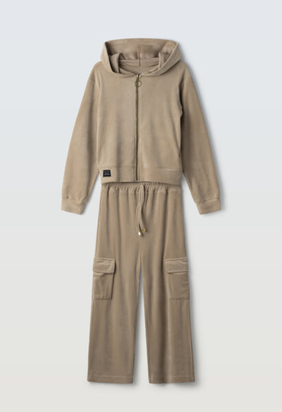 Παιδικό σετ φόρμα βελούδινη με ζακέτα Εβίτα για κορίτσι από 6 έως 16 ετών σε μπεζ χρώμα.
