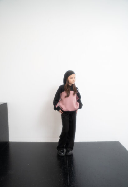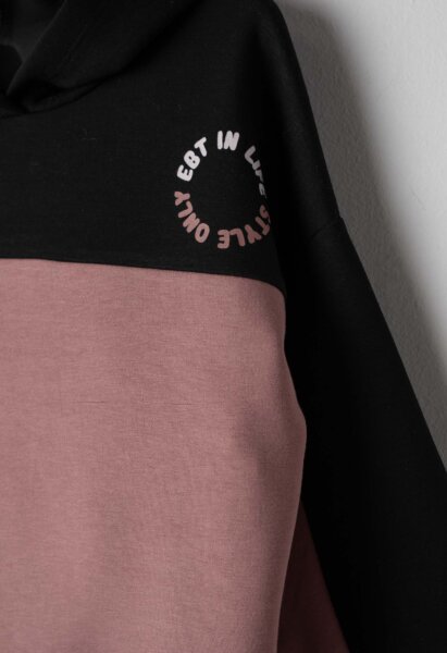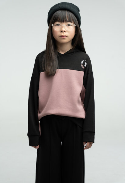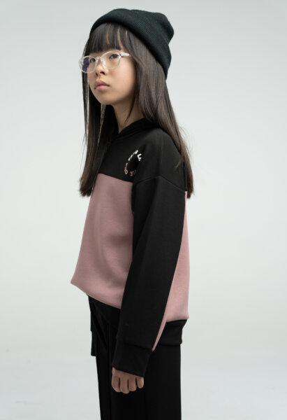 Παιδικό σετ φόρμα με κουκούλα Εβίτα για κορίτσι από 6 έως 16 ετών σε ροζ – μαύρο χρώμα.