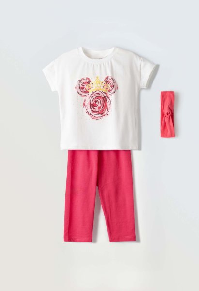Παιδικό σετ κολάν ΕΒΙΤΑ για κορίτσι από 1 έως 6 ετών. Μπλούζα σε λευκό χρώμα με τύπωμα, κολάν σε φούξια χρώμα και κορδέλα.