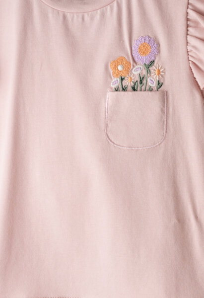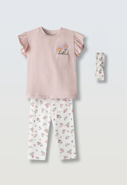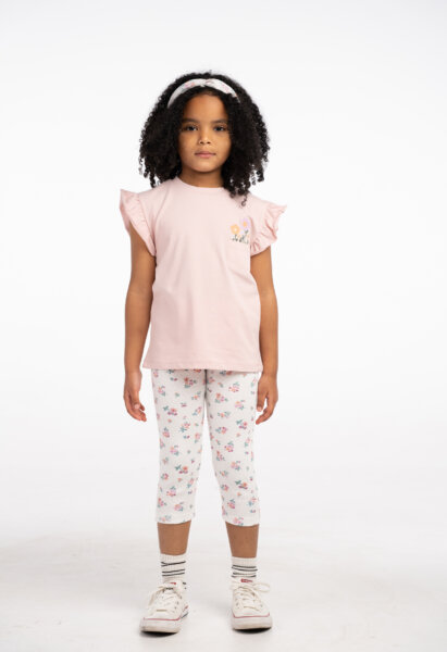 Παιδικό σετ κολάν ΕΒΙΤΑ για κορίτσι από 2 έως 6 ετών. Μπλουζάκι σε ροζ χρώμα και εμπριμέ κολάν.