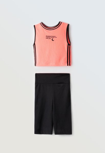 Παιδικό σετ κολάν ΕΒΙΤΑ για κορίτσι από 6 έως 16 ετών. Μπλούζα σε σομόν χρώμα με τύπωμα και μαύρο κολάν.