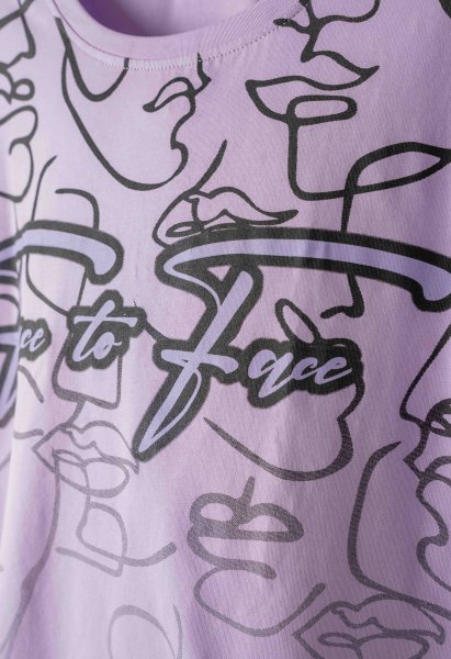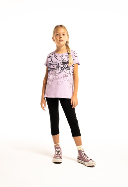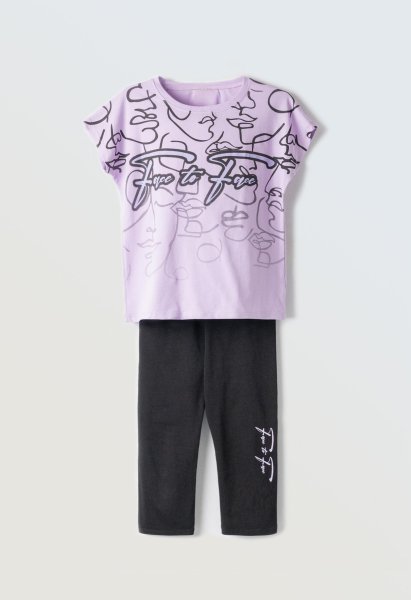 Παιδικό σετ κολάν ΕΒΙΤΑ για κορίτσι από 6 έως 16 ετών. Μπλούζα σε λιλά χρώμα με τύπωμα και μαύρο κολάν.