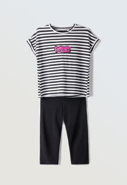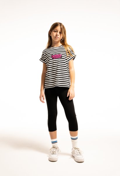 Παιδικό σετ κολάν ΕΒΙΤΑ για κορίτσι από 6 έως 16 ετών. Μπλούζα σε λευκό χρώμα με ριγέ τύπωμα και μαύρο κολάν.