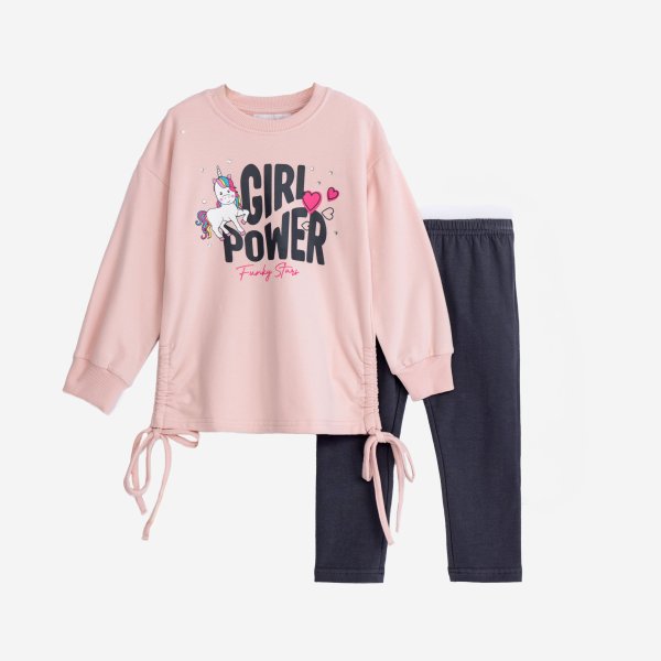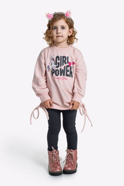 Παιδικό σετ κολάν for Funky Kids για κορίτσι από 1 έως 6 ετών σε ροζ χρώμα με τύπωμα και ανθρακί κολάν.