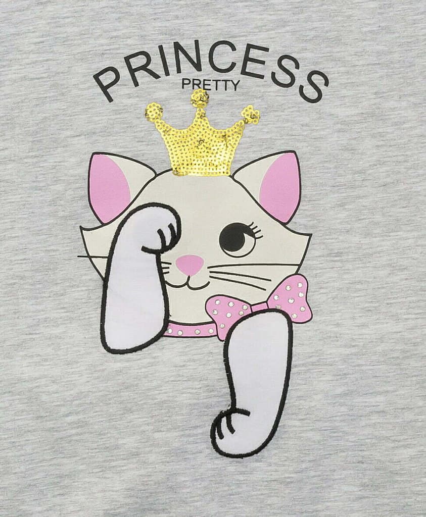 Μπλουζοφόρεμα κοντομάνικο σε χρώμα ανοικτό γκρι μελανζέ με τύπωμα.