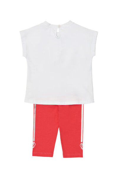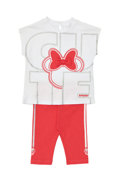 Παιδικό σετ κολάν Sprint για κορίτσι από 1 έως 6 ετών. Μπλούζα σε λευκό χρώμα με τύπωμα και κολάν σε κοραλί χρώμα.