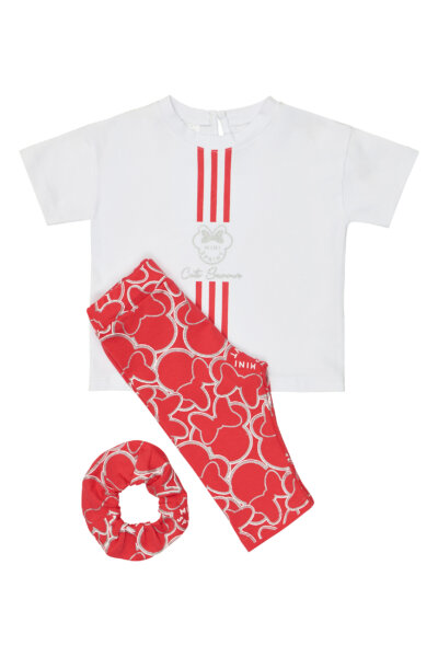 Παιδικό σετ κολάν Sprint για κορίτσι από 1 έως 6 ετών. Μπλούζα σε λευκό χρώμα με τύπωμα και κολάν σε κοραλί χρώμα.