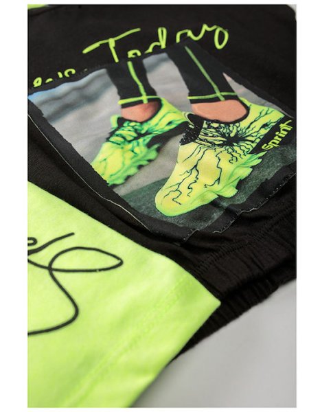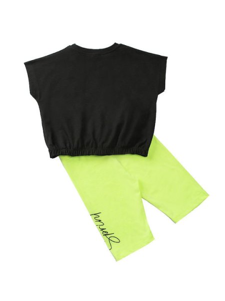 Παιδικό σετ κολάν Sprint για κορίτσι από 6 έως 16 ετών σε μαύρο χρώμα με τύπωμα και κίτρινο fluo κολάν.