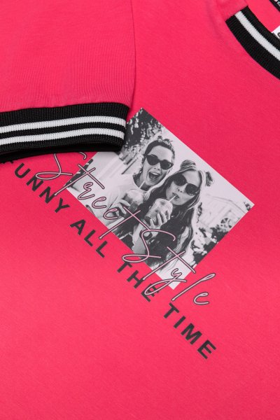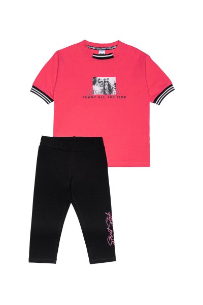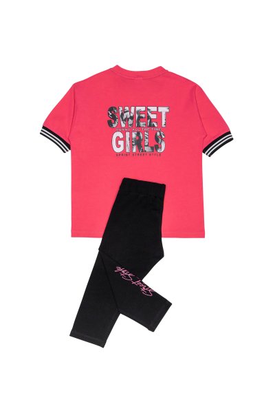 Παιδικό σετ κολάν Sprint για κορίτσι από 7 έως 16 ετών. Μπλούζα σε φούξια χρώμα με τύπωμα και μαύρο κολάν.