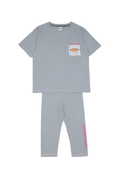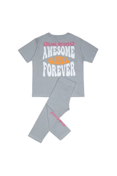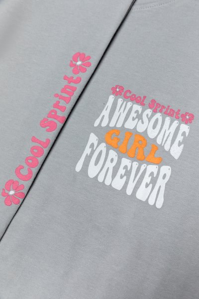 Παιδικό σετ κολάν Sprint για κορίτσι από 7 έως 16 ετών. Μπλούζα σε γκρι χρώμα με τύπωμα και γκρι κολάν.