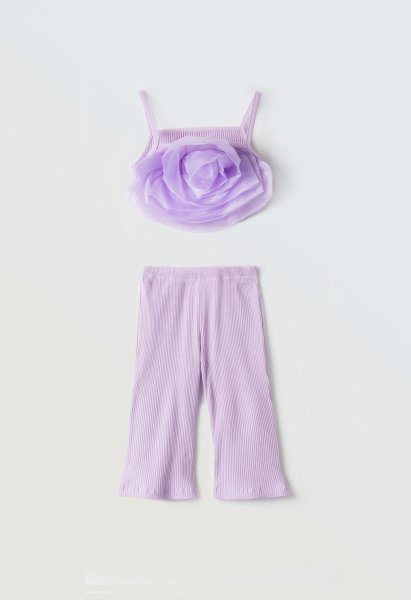 Παιδικό σετ παντελόνα ΕΒΙΤΑ για κορίτσι από 1 έως 6 ετών. Τοπ σε μωβ χρώμα και μωβ παντελόνι καμπάνα.