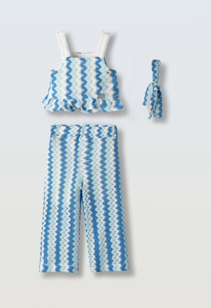 Παιδικό σετ παντελόνα ΕΒΙΤΑ για κορίτσι από 2 έως 6 ετών. Τοπάκι σε μπλε χρώμα με μπλε παντελόνα και κορδέλα.