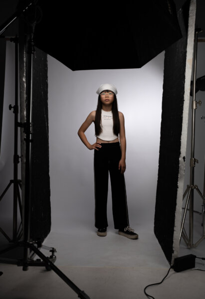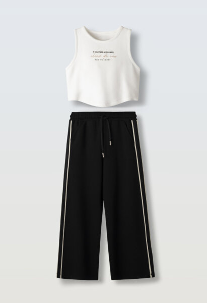 Παιδικό σετ κολάν ΕΒΙΤΑ για κορίτσι από 6 έως 14 ετών. Τοπάκι σε λευκό χρώμα και μαύρη παντελόνα.