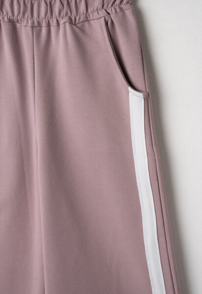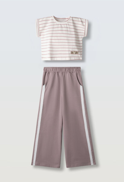 Παιδικό σετ κολάν ΕΒΙΤΑ για κορίτσι από 6 έως 14 ετών. Τοπάκι ριγέ σε λευκο χρώμα και μωβ παντελόνα.