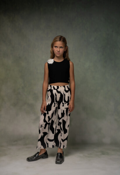 Παιδικό σετ παντελόνα ΕΒΙΤΑ για κορίτσι από 6 έως 14 ετών. Τοπάκι σε μαύρο χρώμα και ασπρόμαυρη παντελόνα.
