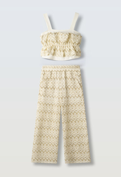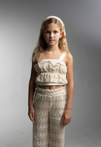 Παιδικό σετ παντελόνα ΕΒΙΤΑ για κορίτσι από 6 έως 14 ετών. Τοπάκι σε εκρού-χρυσό χρώμα και ασορτί παντελόνα.