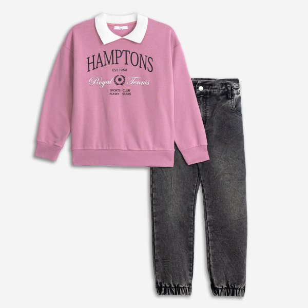 Παιδικό σετ παντελόνι for Funky Kids για κορίτσι από 6 έως 16 ετών σε ροζ χρώμα και μαύρο τζιν παντελόνι.