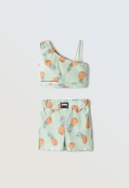 Παιδικό σετ σορτς ΕΒΙΤΑ για κορίτσι από 1 έως 6 ετών. Μπλούζα και σορτς σε μέντα χρώμα με allover τύπωμα.